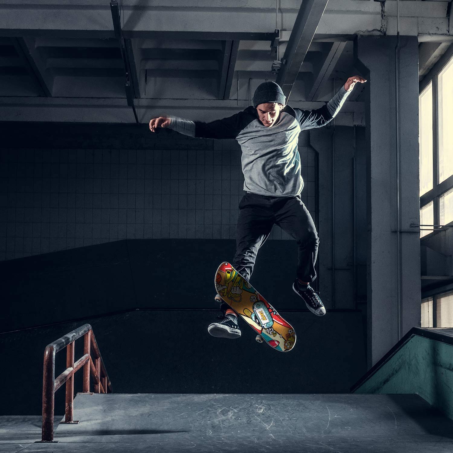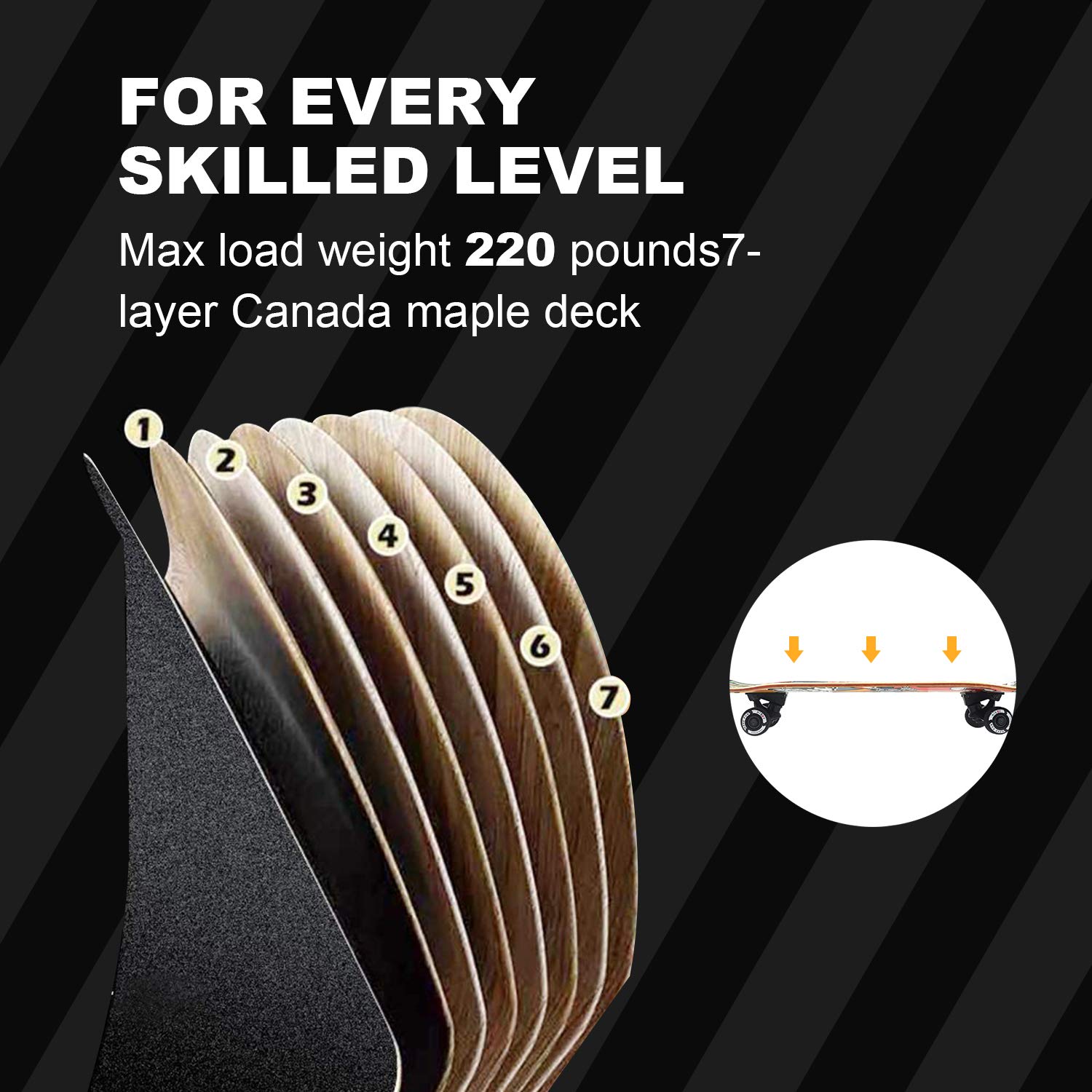 - High-Quality Construction: The skateboard features a 7-layer Canada maple deck, ensuring durability and safety during your rides.