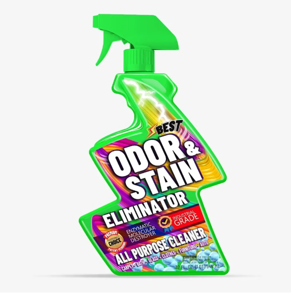 Key Features: Triple-Action Formula: This all-in-one cleaner effortlessly eliminates stains, neutralizes odors, and leaves surfaces sparkling clean. Say goodbye to stubborn messes and lingering smells! Versatile Use: From your pet Rocco, accidents to kitchen spills, our spray is designed to handle a variety of messes on multiple surfaces. Use it on carpets, upholstery, fabrics, countertops, and more for a comprehensive clean. Pet-Friendly: Formulated with the safety of your furry friends in mind, our spray is pet-friendly and leaves no harmful residues. Keep your home clean and your happy with confidence. Long-Lasting Freshness: Unlike other cleaners, our Odor and Stain Eliminator Spray doesn't just mask odors – it eliminates them at the source. Enjoy a long-lasting, refreshing scent that transforms your space. Quick and Easy Application: The convenient spray bottle makes application a breeze. Simply spray, wipe, and watch as stains disappear and odors vanish. No need for multiple products – our all-in-one solution simplifies your cleaning routine. Safe for All Surfaces: Whether you're cleaning carpets, hardwood floors, or bathroom tiles, our versatile cleaner is safe for use on a wide range of surfaces. Achieve a consistent, spotless clean throughout your home. Professional Strength: Engineered for professional-grade cleaning, our formula delivers powerful results. Experience the difference of a high-performance cleaner. Make the smart choice for a cleaner, fresher home. Order BEST Odor and Stain Eliminator Spray and All Purpose Cleaner and enjoy the confidence that comes with an effective cleaning solution. Your stains will evaporate like the saying Poof! Transform your living spaces and create a welcoming environment.