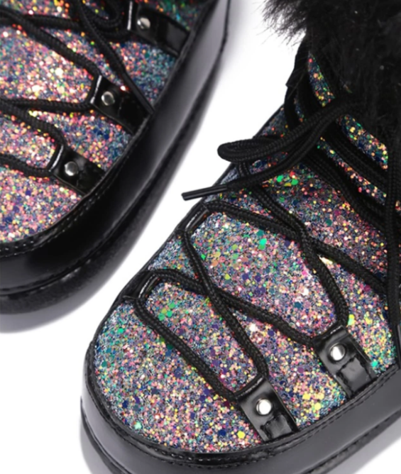 ❄️ All-Over Iridescent Sequin Finish – Sparkle in every step, even in snow