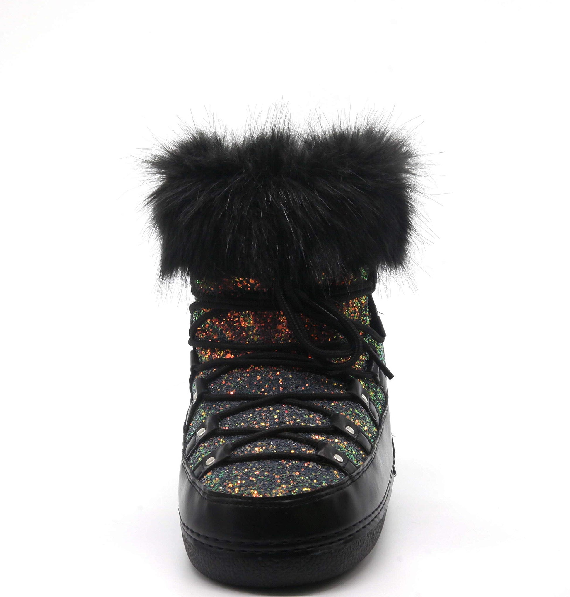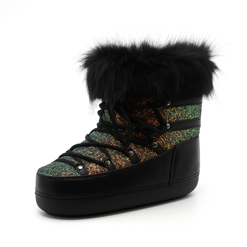 Polar Women’s Sequin Feather Snow Boots – Round Toe Winter Booties with Faux Fur Trim