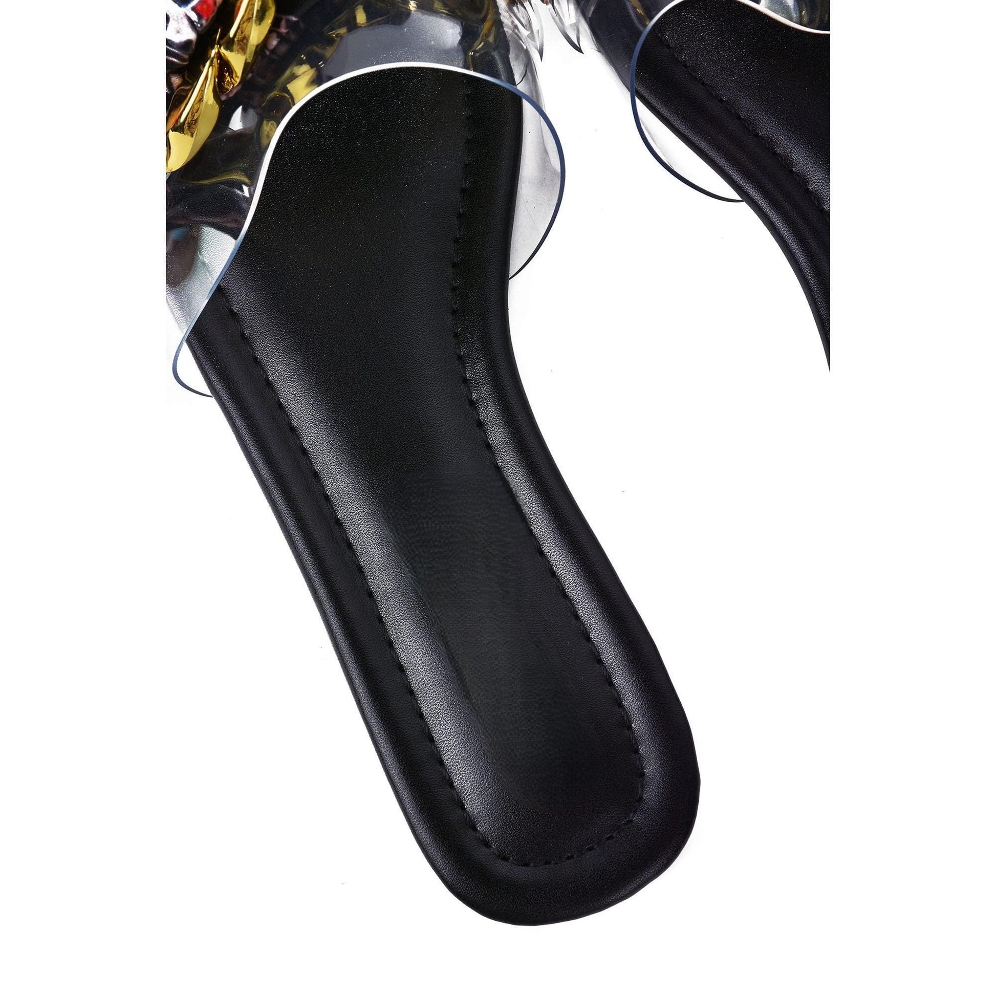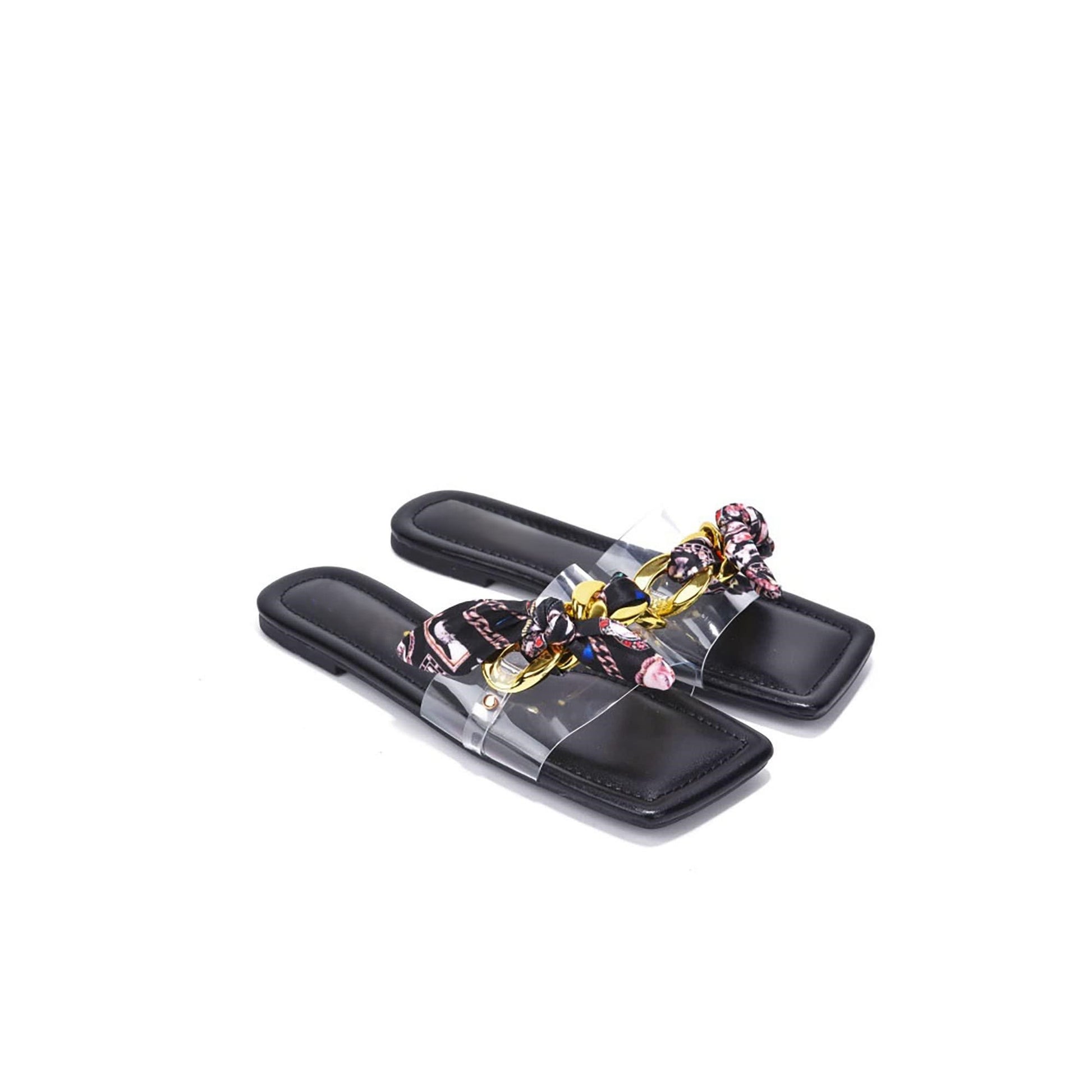 Rival Women’s Square Toe Flat Sandals – Slip-On Clear Strap Slides with Chain Bow Detail, Summer Casual Chic Beach Shoes