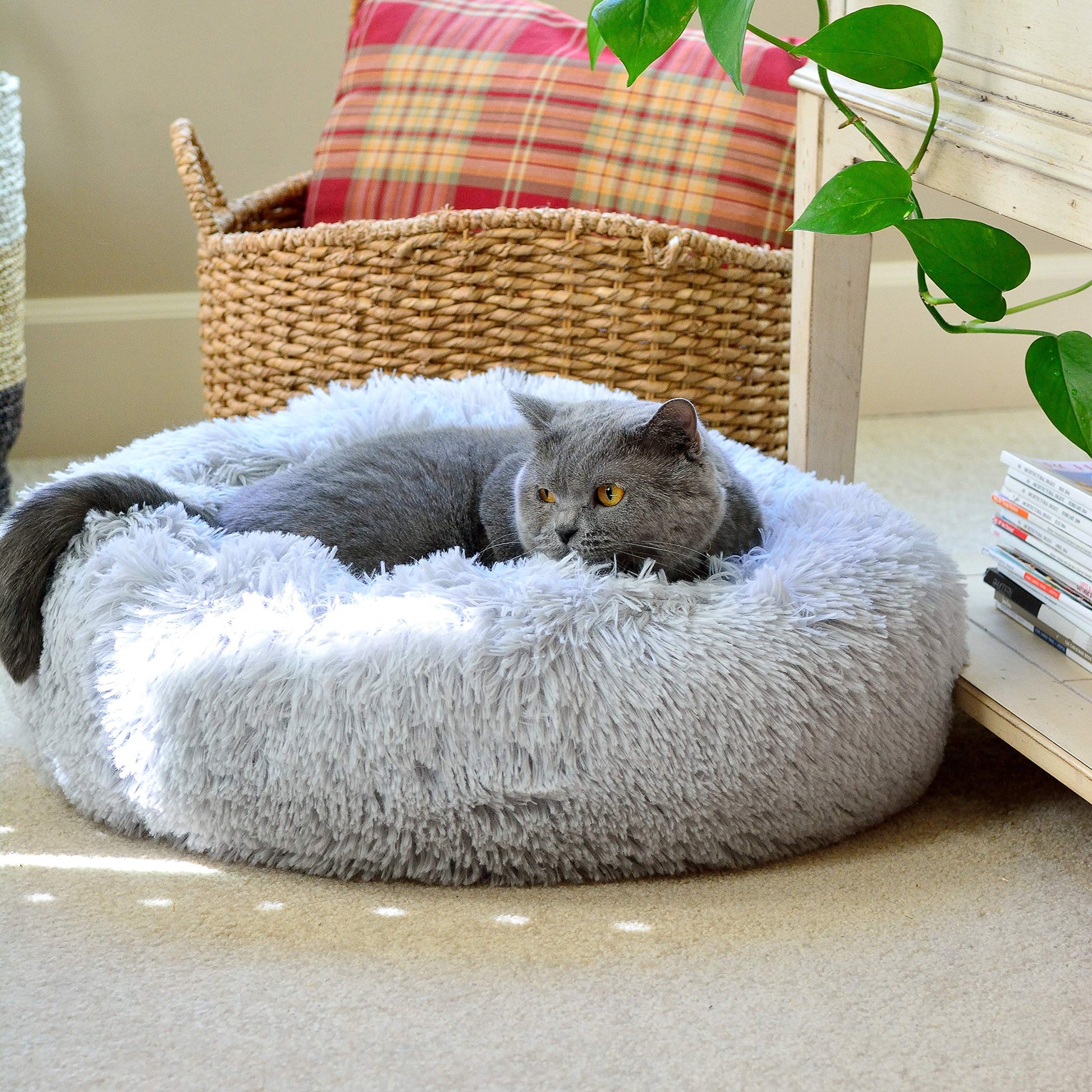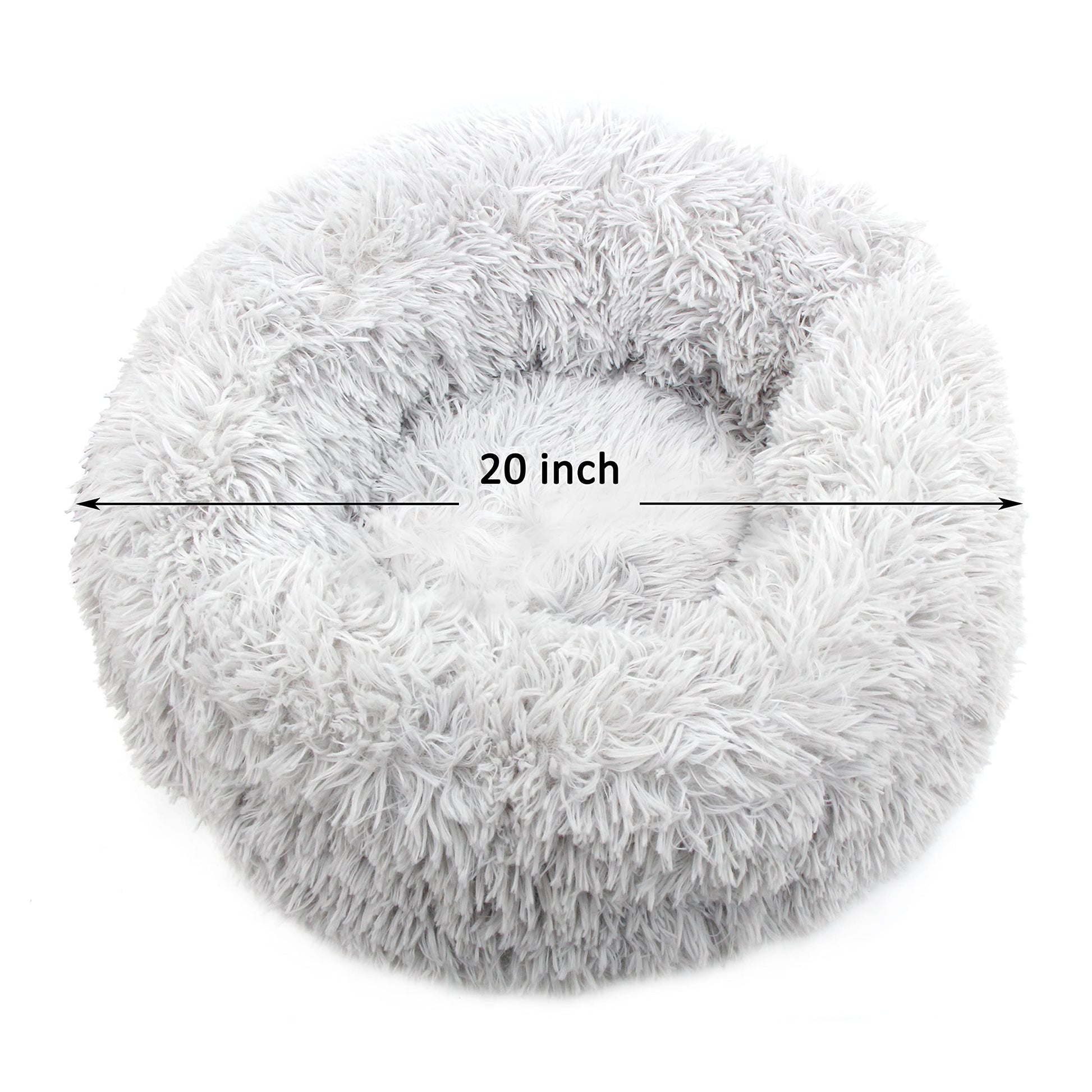 Round Calming Donut Pet Bed – Fluffy Soft Dog & Cat Bed for Small Pets, Anti-Anxiety Cozy Nest for Sleeping & Cuddling, 20/25 Inch Diameter