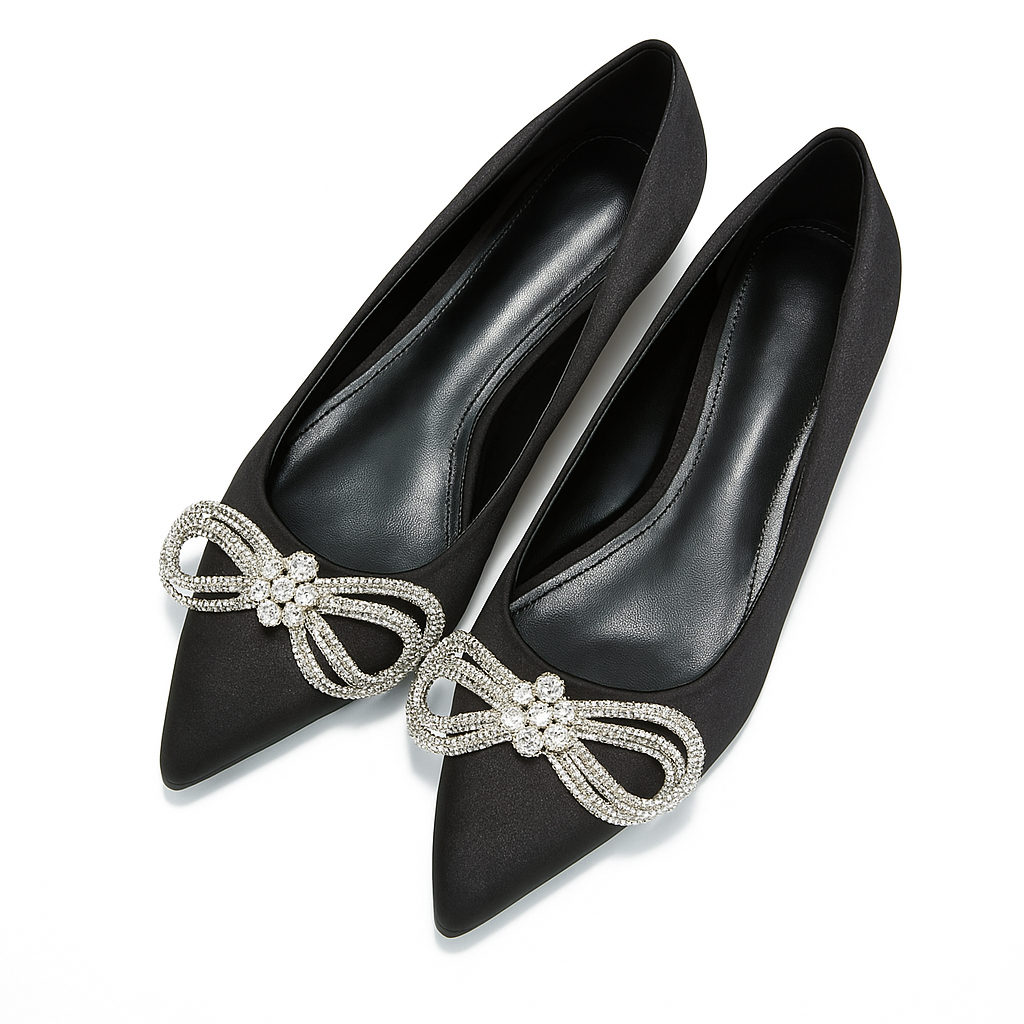 Stearling Pointed Toe Flats for Women â Elegant Rhinestone Bow Slip-On Dress Shoes