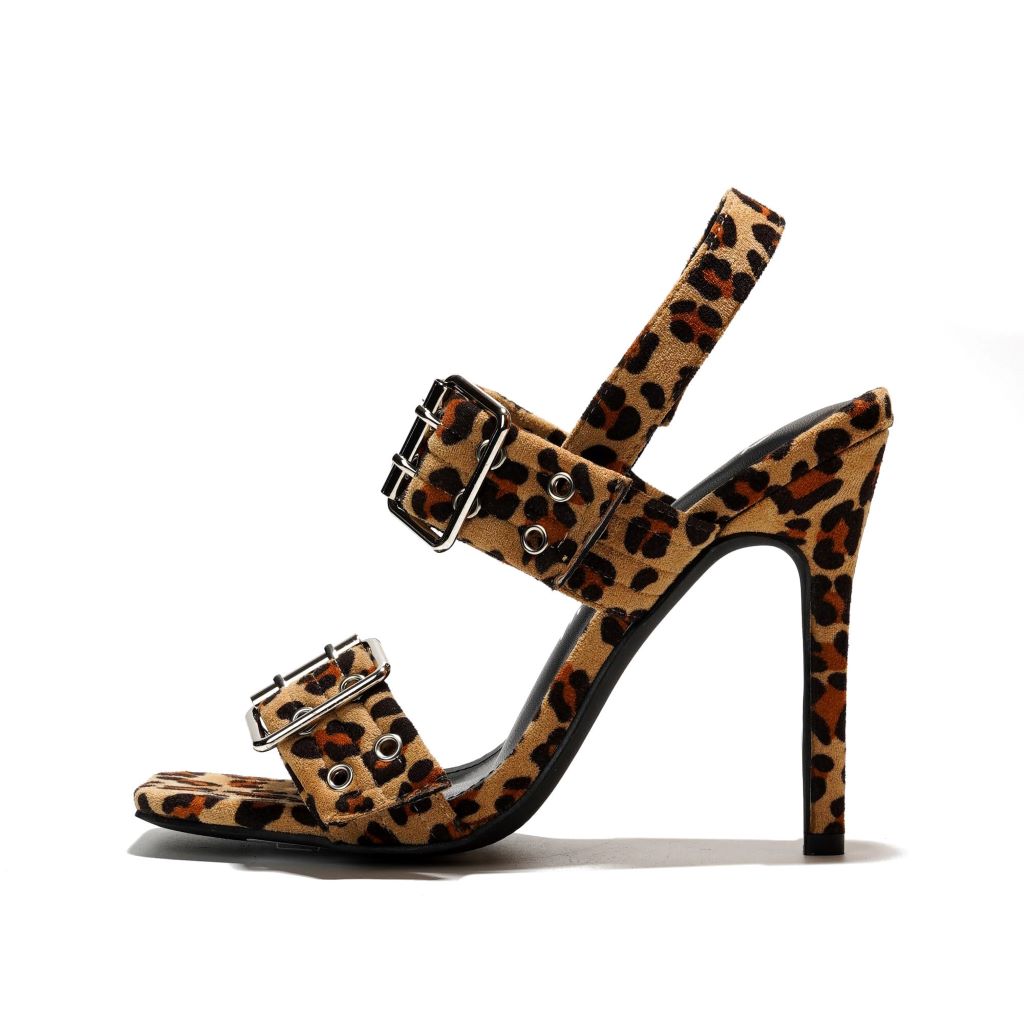 Winonah Leopard Print Belted Square Toe Heels â Stiletto High Heel Sandals for Women